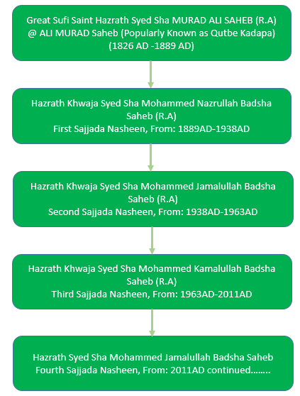 The below list of Sole Sajjada Nasheen to the Darga of Hazrath ALI MURAD SAHEB Qibla R.A in succession.
